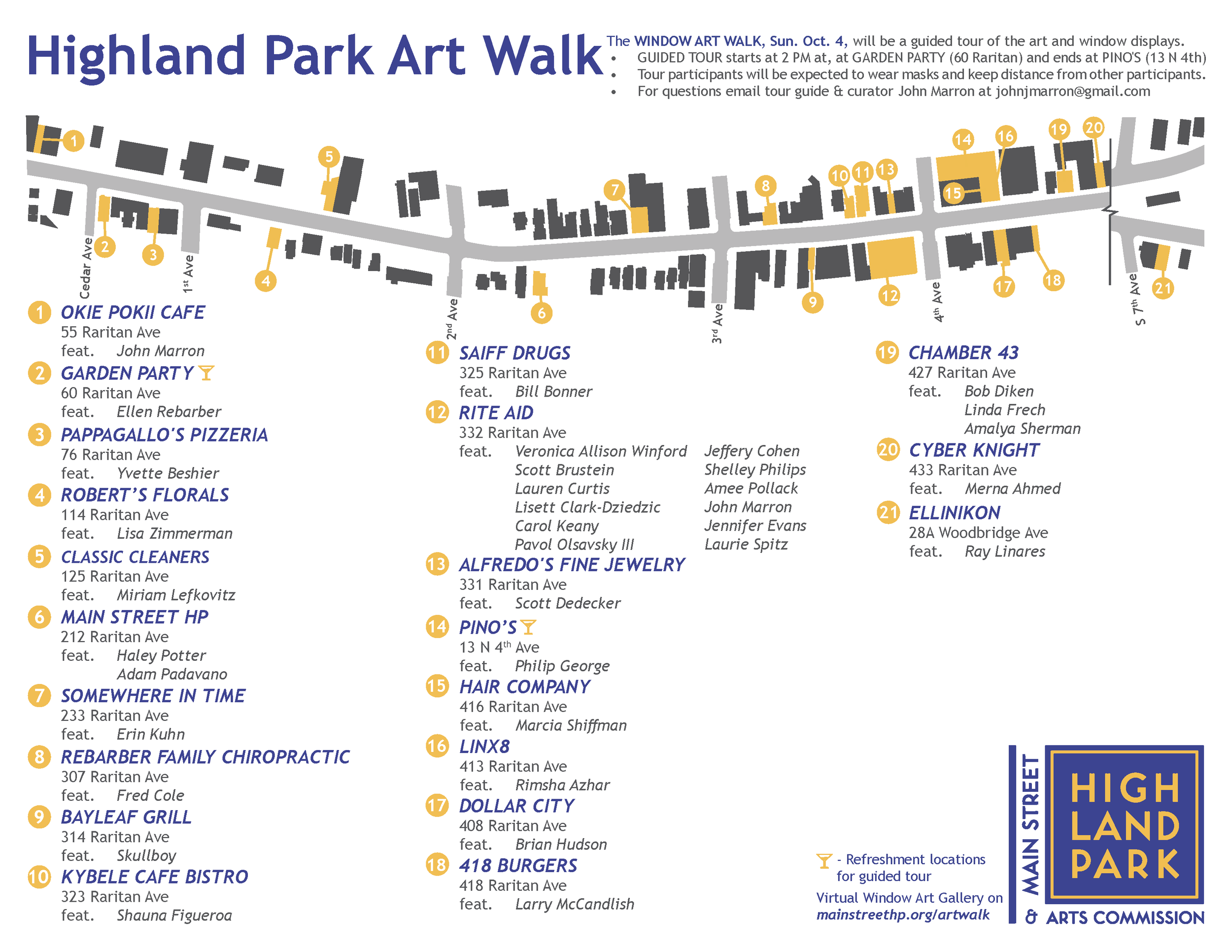 The window art walk is a 2-3 month long exhibit. John Marron, a dedicated Main Street HP volunteer and board member, matchmakes the artists and the business owners.